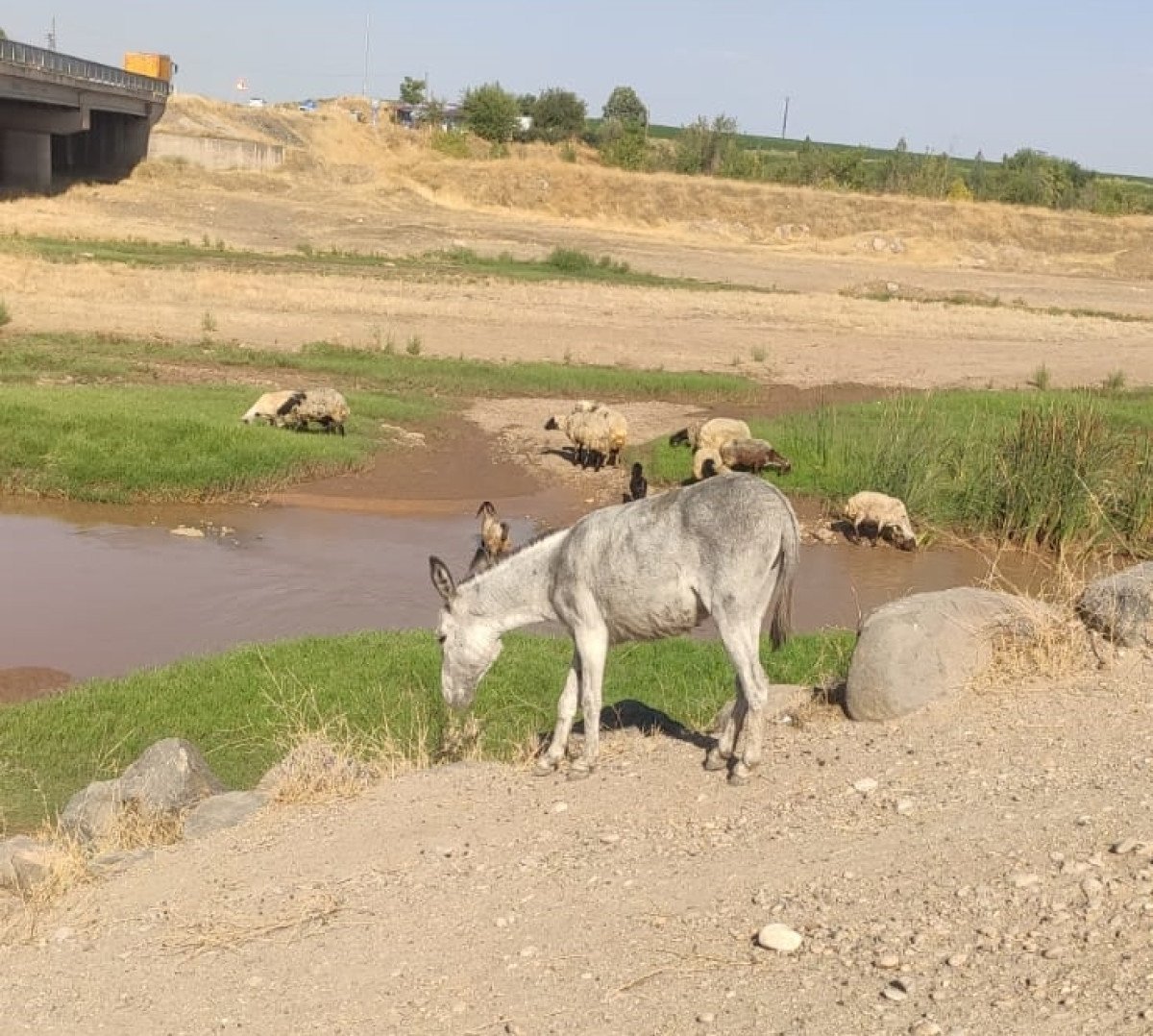 Diyarbakır'ın Bismil ilçesine bağlı Sanayi Mahallesi Karaköprü mevkisinde, 30 Temmuz'da annesiyle yolun karşısına geçmeye çalışan yavru eşek, plakası ve sürücüsü belirlenemeyen aracın çarpması sonucu öldü.