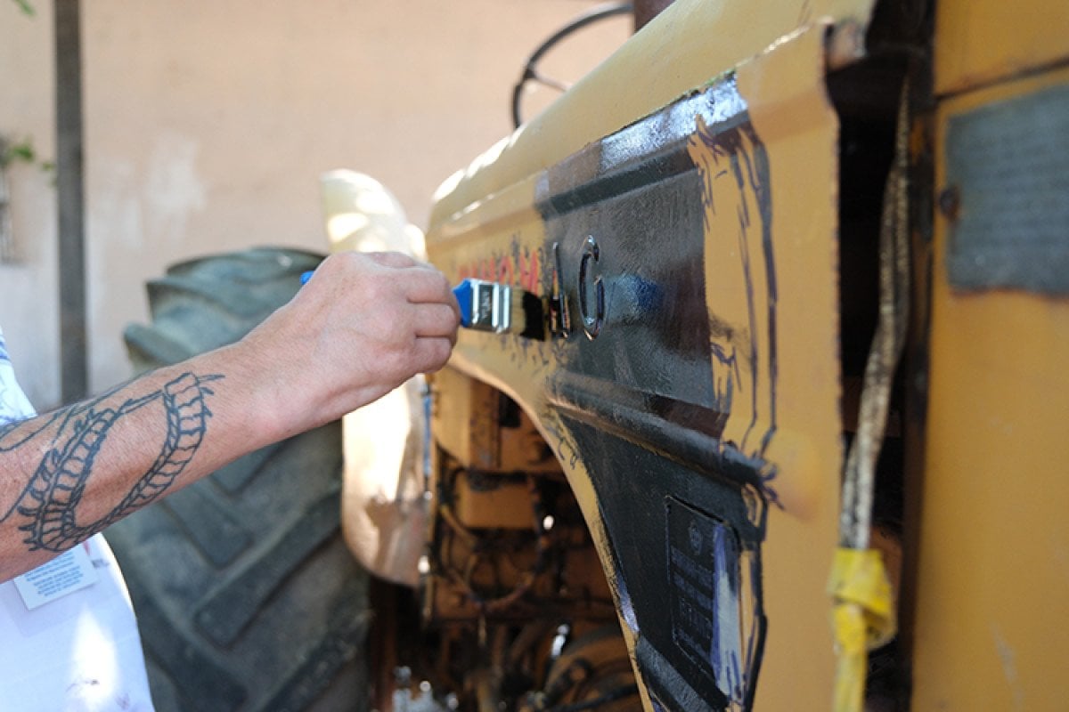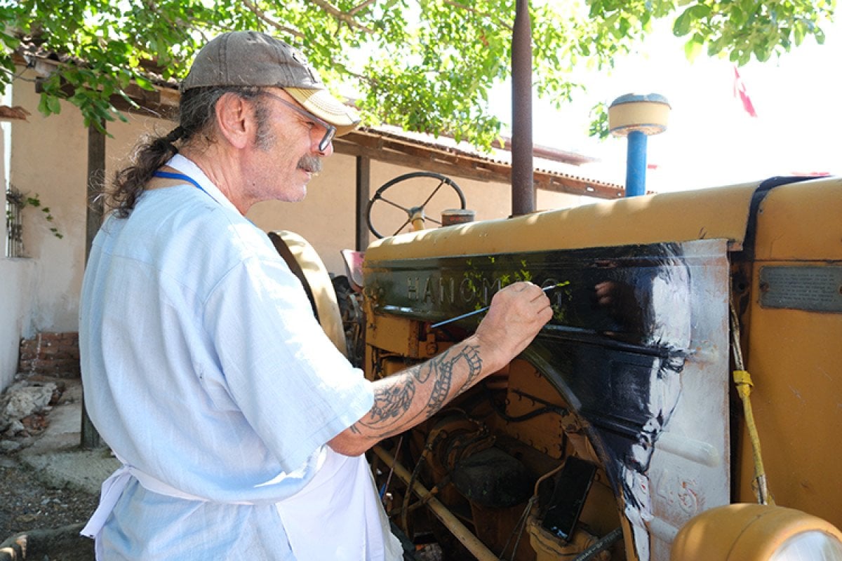 Ressam Rüzgar Fidan ise ilk kez bir traktöre resim yaptığını belirtti.