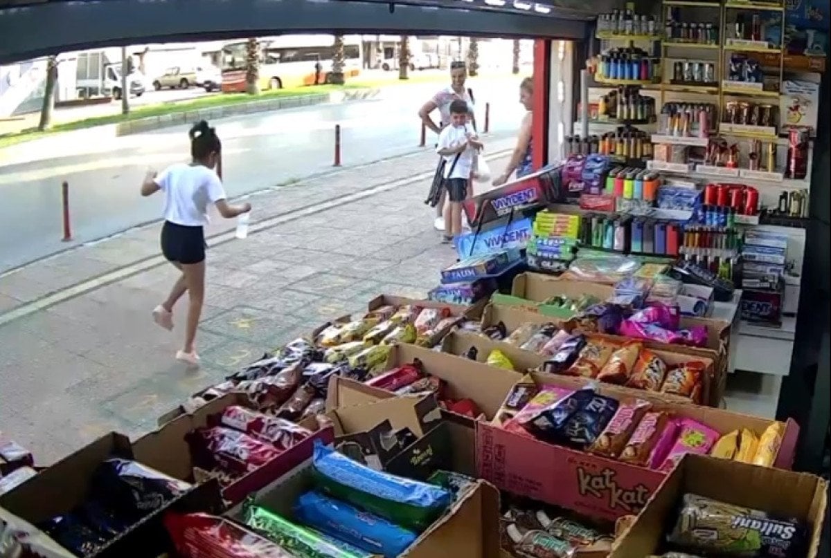Her yaştan vatandaşın büfenin önünden geçerken seksek oynaması ise güvenlik kamerasınca kaydedildi.