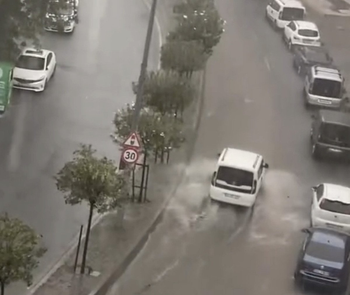 Araçlar sağanak yağış nedeniyle yağmur suyuyla dolan caddede ilerlemekte güçlük çekti.
