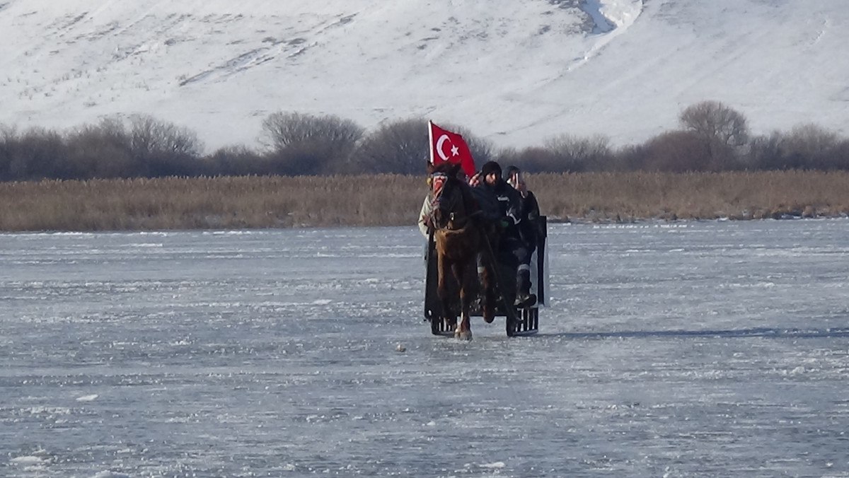 Türkiye'nin doğusunda yer alan ve yüzeyi kısmen buzla kaplanan Kars Çıldır Gölü'nde atlı kızak seferleri başladı.