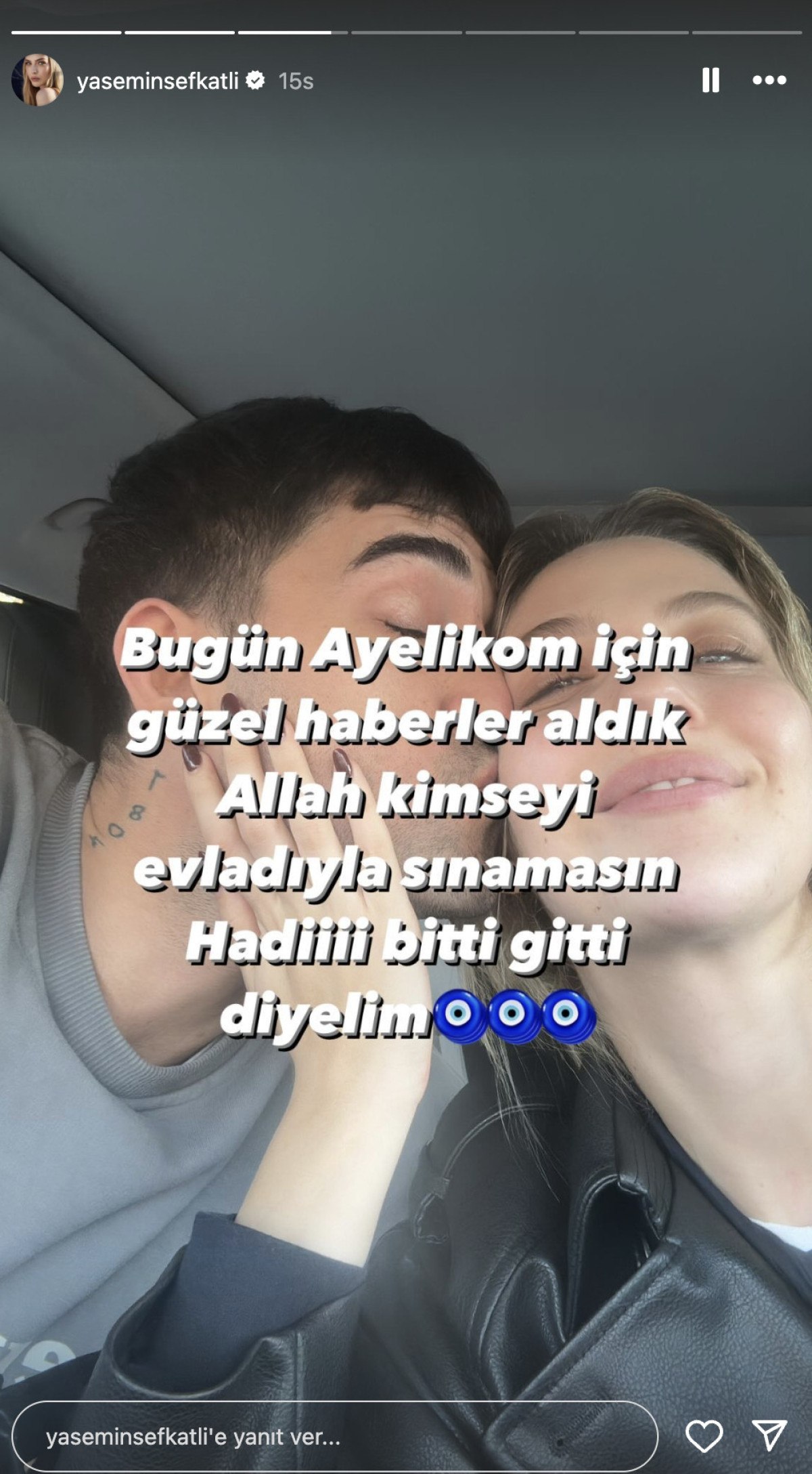 Ünlü isim, "Bugün Ayelikom için güzel haberler aldık. Allah kimseyi evladıyla sınamasın. Hadi bitti, gitti diyelim" ifadelerini kullandı.
