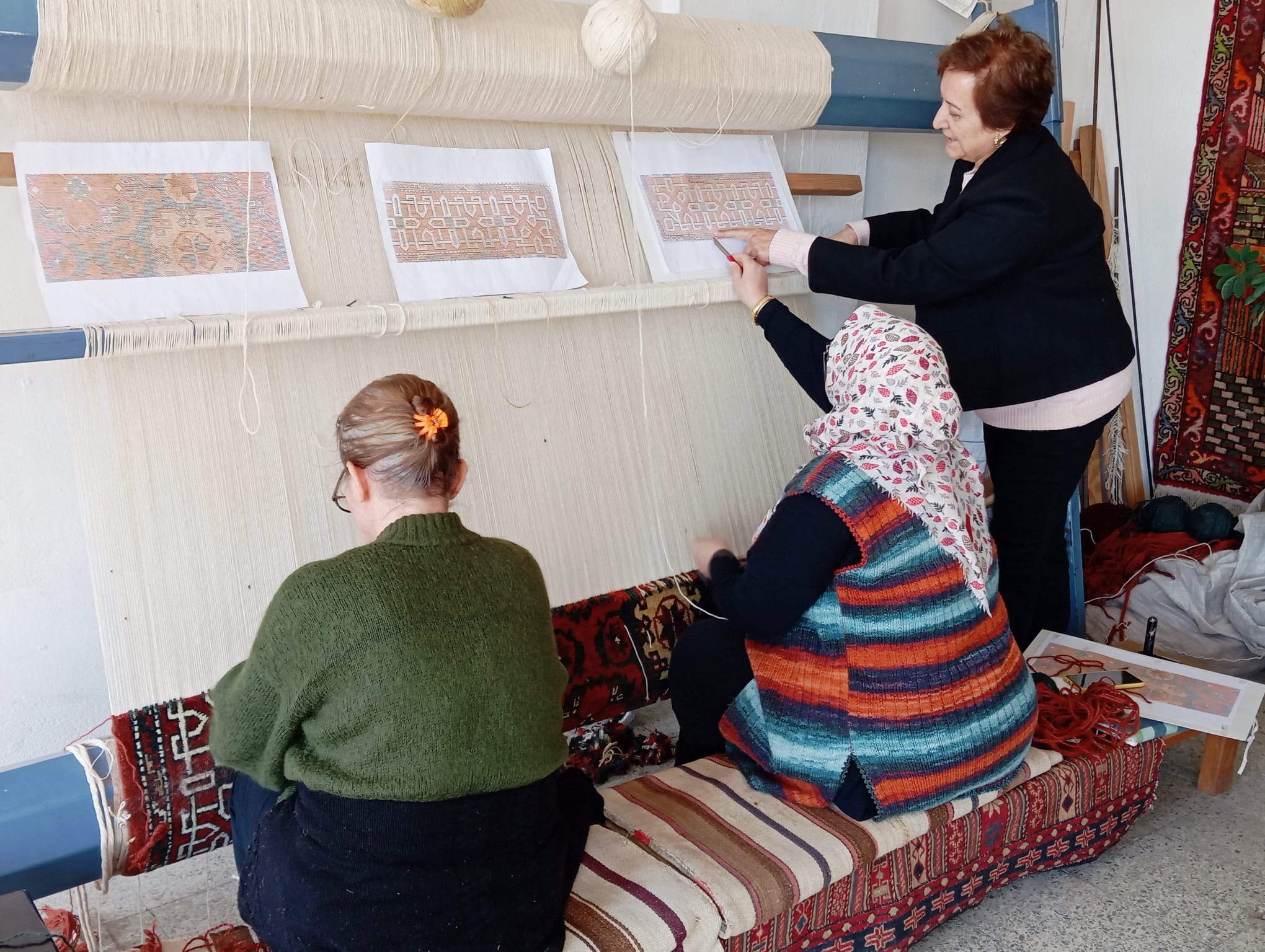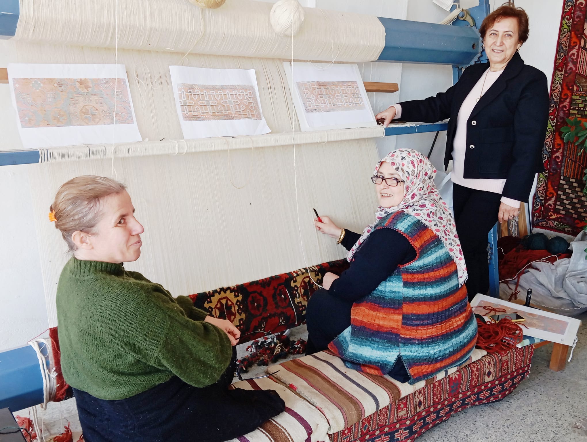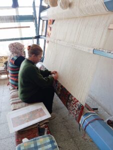 Kooperatif sadece klasik Bergama halılarını yeniden dokumakla kalmıyor, aynı zamanda özel tasarım halı ve kilimler de üretiyor.