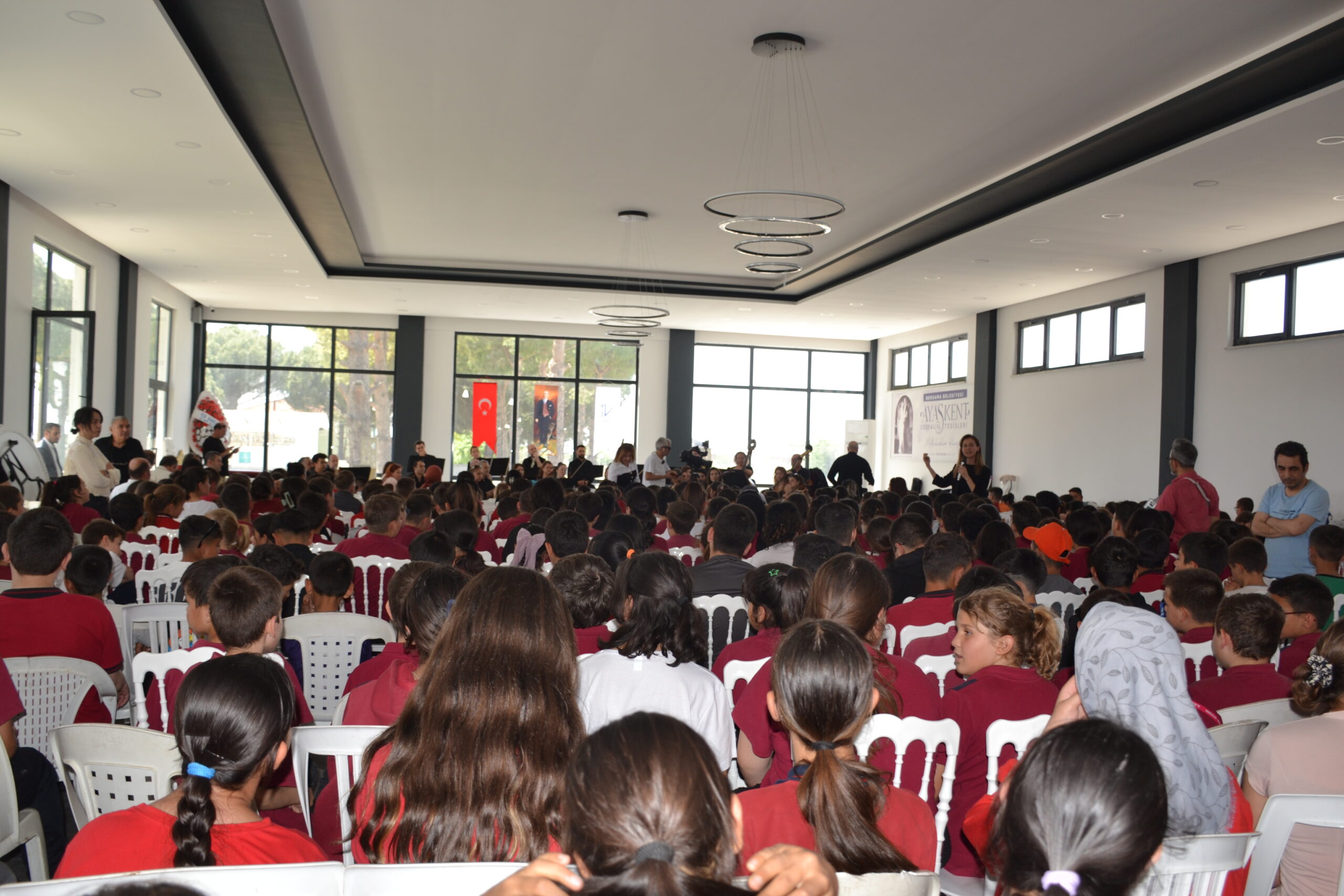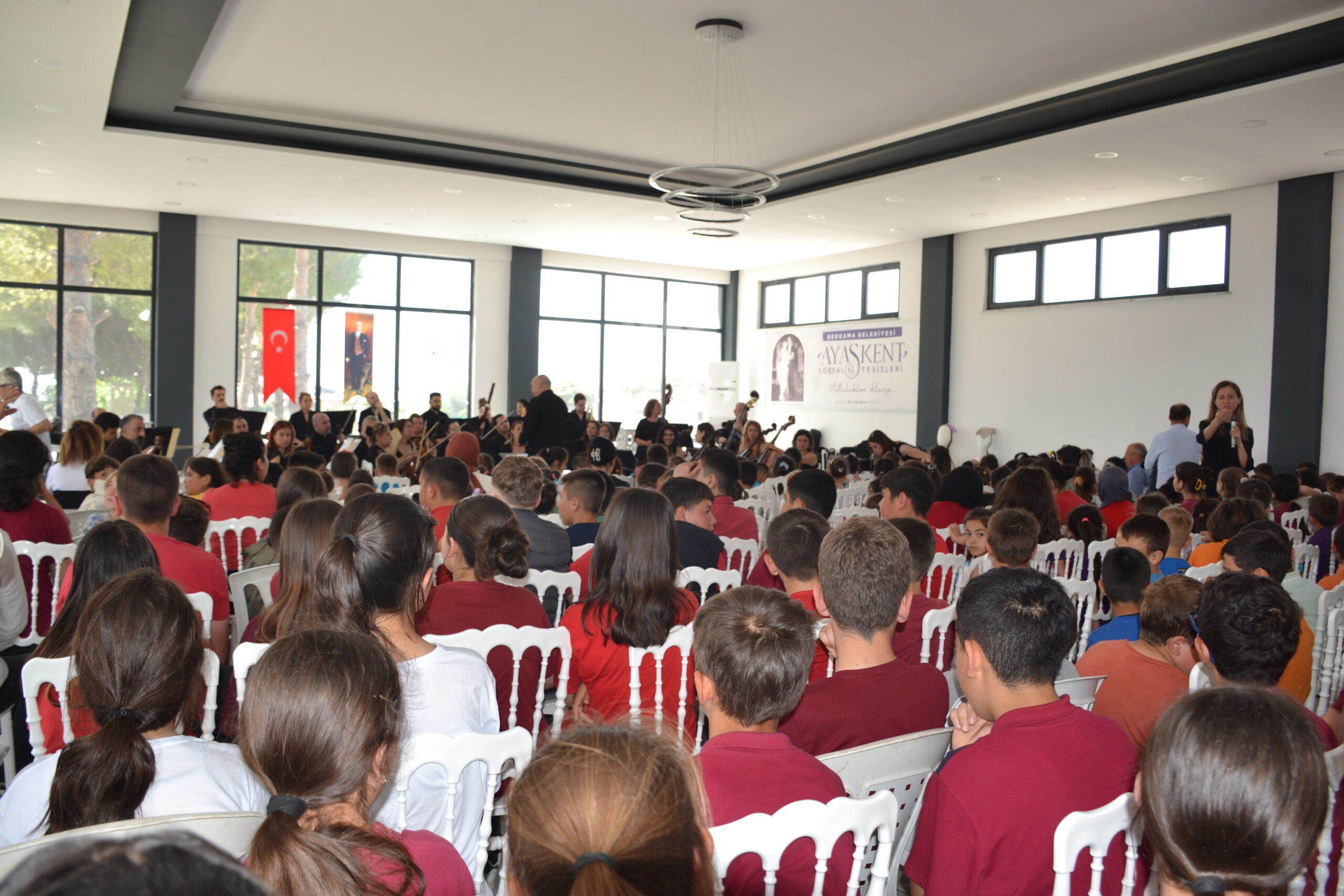 İzmir Senfoni Orkestrası sanatçılarının klasik müzik konseriyle hayal güçlerini zenginleştiren öğrenciler şarkılara eşlik ederek içlerinden bazıları orkestrayı yönetme fırsatı bularak geleceğin sanatçıları olma yolunda ilk adımlarını attı.