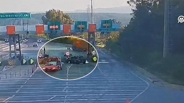 Görüntülerde, Beyza Nur Pürmüs'ün (25) kullandığı otomobilin gişelerin önündeki bariyere çarpması yer alıyor.