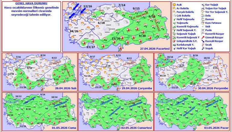 Söz konusu yağışlı sistemin cuma itibarıyla tüm yurtta etkili olacağının altını çizen Tekin, hava sıcaklıklarının hafta boyunca mevsim normalleri civarında seyredeceğini bildirdi.