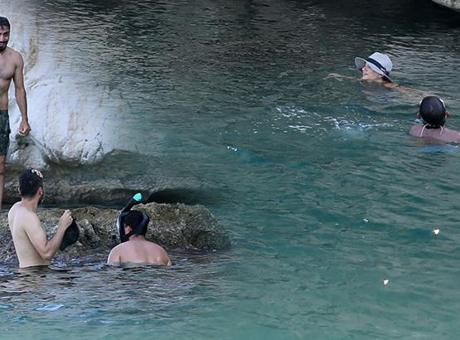 Antalya’nın Konyaaltı ilçesindeki Büyük Çaltıcak Plajı’nda, turkuaz renkli suların ortasında yer alan deniz mağarası keşif meraklılarını cezbediyor.