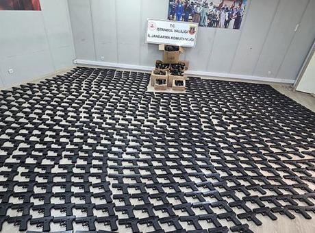 Kamyonetteki aramada 1021 adet 9 milimetre çapında tabanca, 632 adet tabanca gövdesi, 632 adet tabanca üst kapağı ele geçirildi.