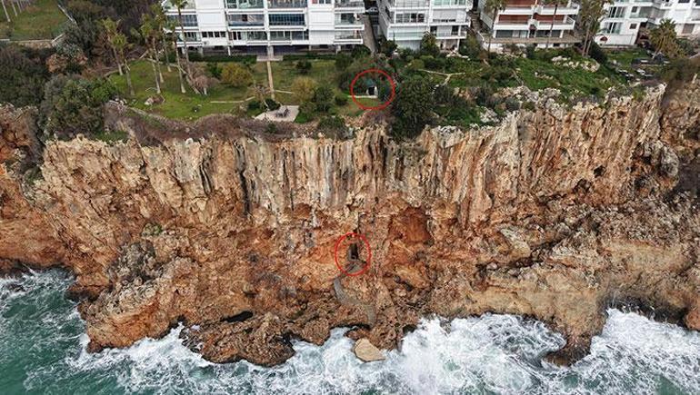 Öte yandan Muratpaşa Kaymakamlığı tarafından daha önce yapılan açıklamada, falezlerin deniz tarafında kayalıklara açılan bir mağara ve girişinde kamera bulunan demir kapının tespit edilmesi üzerine başlatılan incelemede, yapının yaklaşık 40 yıl önce inşa edildiği belirlenmişti. Mağara içinden denize asansörle ulaşım sağlandığı ve içeride merdiven bulunduğu da kaydedildi.