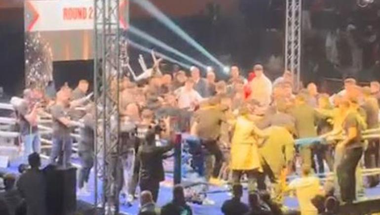Ringde başlayan gerginlik kısa sürede büyüyerek kavgaya dönüştü. Sandalyelerin kullanıldığı, tekme ile yumrukların atıldığı kavga ve arbedeye özel güvenlik personeli güçlükle müdahale etti. Ringe çıkan onlarca kişinin karışmasıyla büyüyen kavga üzerine karşılaşma yarıda kesildi.