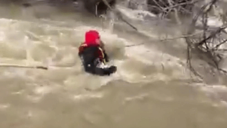 Çalışmalar sırasında bir SAK personeli suya kapıldı. Yağış ve eriyen kar suları nedeniyle debisi yükselen derede akıntıya kapılarak sürüklenen SAK personeli, dalgıç ekipler tarafından uzatılan iple kurtarıldı.