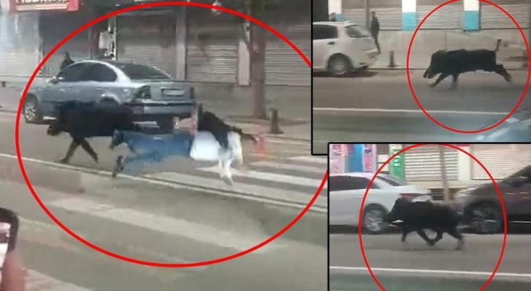 Domuzun Turgut Özal Bulvarı’nda yaya geçidinde bir kişiye saldırdığı anlar ise cep telefonuyla kayda alındı. Yaban domuzu, bir süre sonra gözden uzaklaştı.