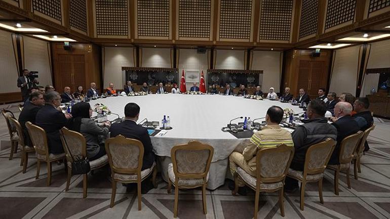 Cumhurbaşkanı Erdoğan, '1 Mayıs Emek ve Dayanışma Günü' nedeniyle işçi ve işveren temsilcilerini kabul etti. Kabulde ayrıca, Cumhurbaşkanı Yardımcısı Cevdet Yılmaz, Çalışma ve Sosyal Güvenlik Bakanı Vedat Işıkhan, Enerji ve Tabii Kaynaklar Bakanı Alparslan Bayraktar, Hazine ve Maliye Bakanı Mehmet Şimşek, Ulaştırma ve Altyapı Bakanı Abdulkadir Uraloğlu ve İletişim Başkanı Burhanettin Duran yer aldı.